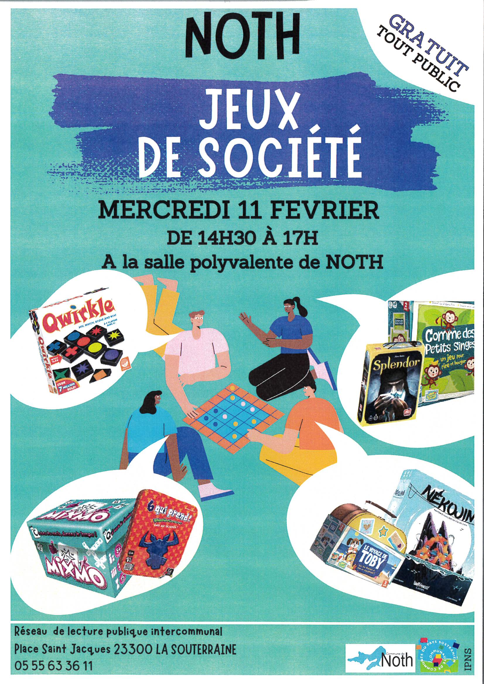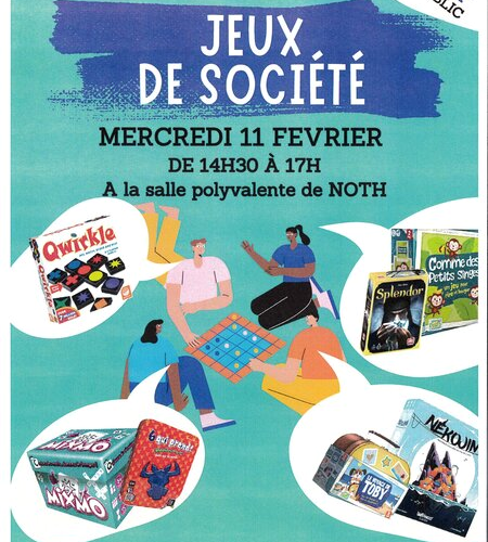 En partenariat avec le réseau de lecture publique, de nombreux jeux de société seront proposés aux petits et aux grands à la salle polyvalente. De 14h30 à 17h.... et c’est GRATUIT !!!