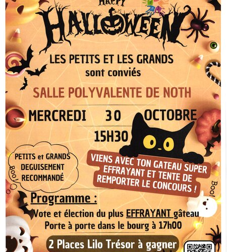 L’ASSOCIATION SCOLAIRE ET SPORTIVE DE NOTH convie petits et grands déguisés pour une après-midi sur le thème d’HALLOWEEN.