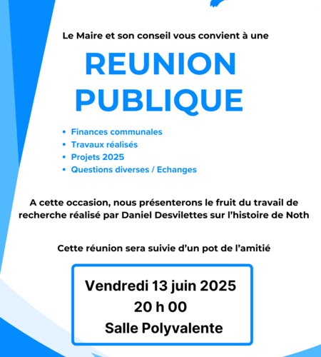 REUNION PUBLIQUE au cours de laquelle les différents sujets seront abordés :
